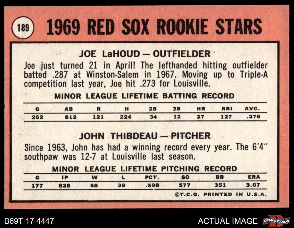 1969 Topps #189 - Joe Lahoud / John Thibodeau Red Sox Rookies 8 - NM/MT