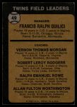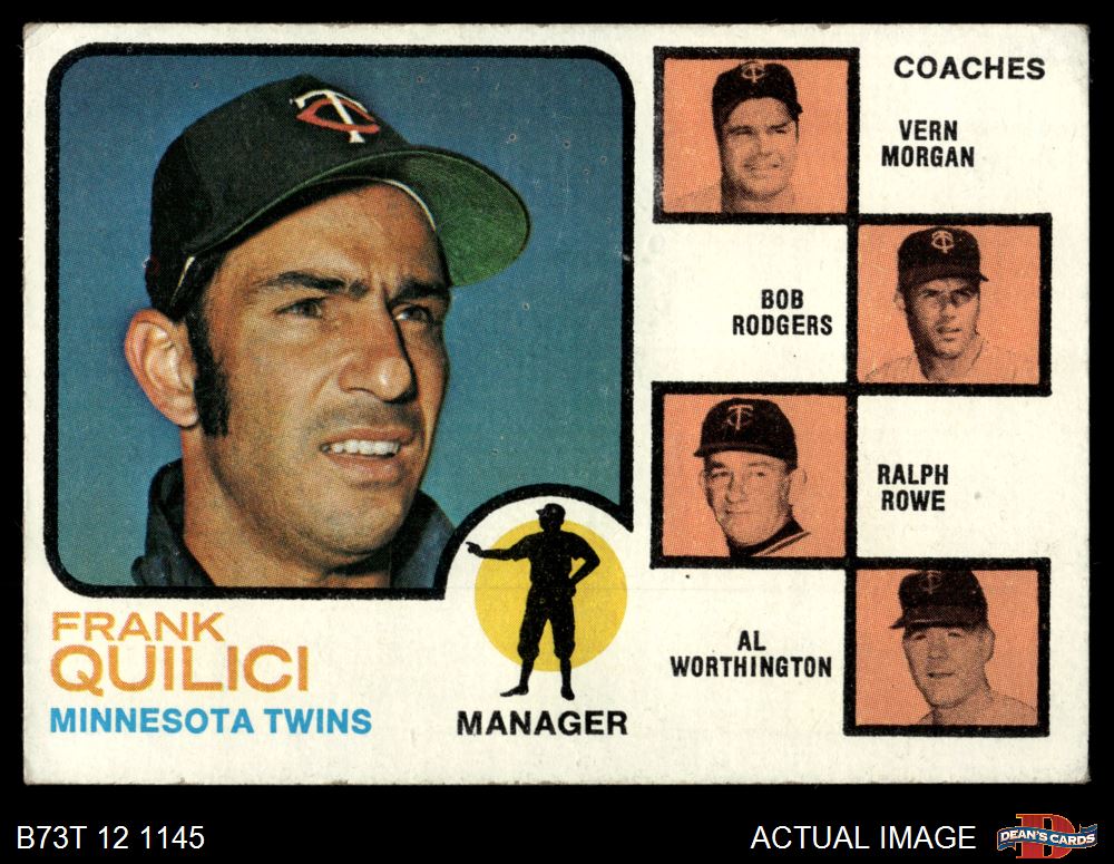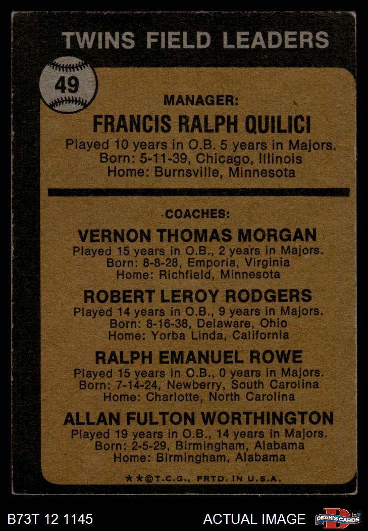 1973 Topps #49 ORG - Frank Quilici / Vern Morgan / Bob Rodgers / Ralph Rowe / Al Worthington Twins Leaders 3 - VG