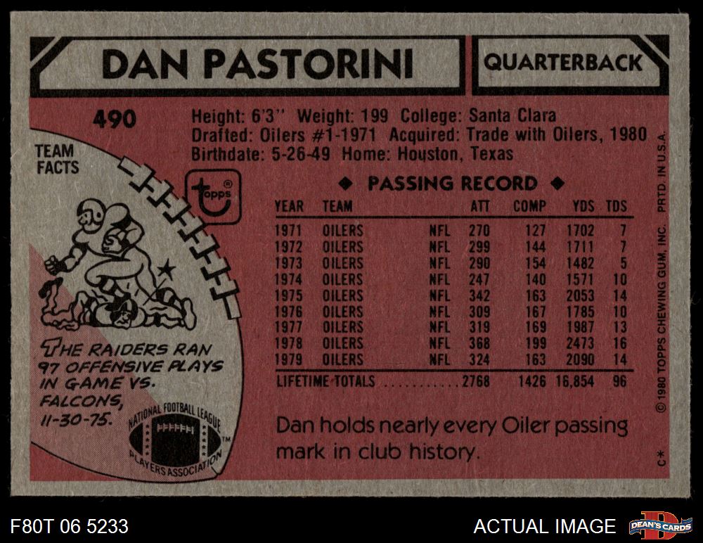 1980 Topps #490 Dan Pastorini 4 - VG/EX