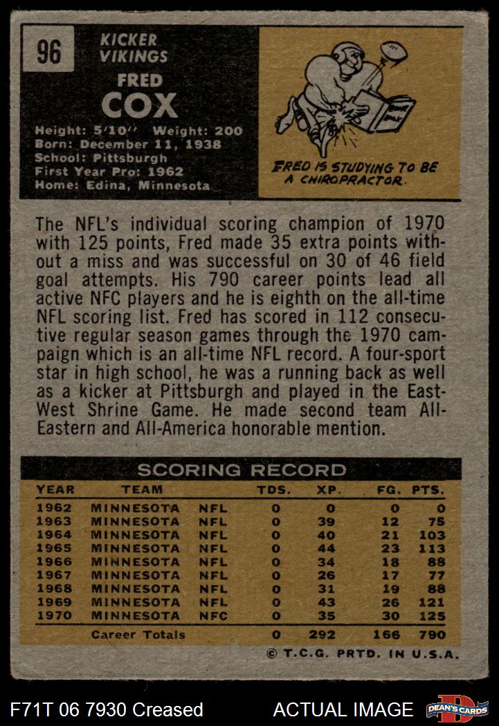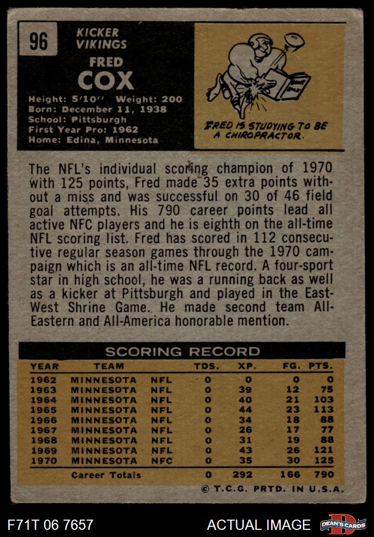 1971 Topps #96 Fred Cox 2 - GOOD