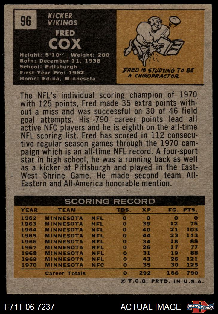 1971 Topps #96 Fred Cox 6 - EX/MT
