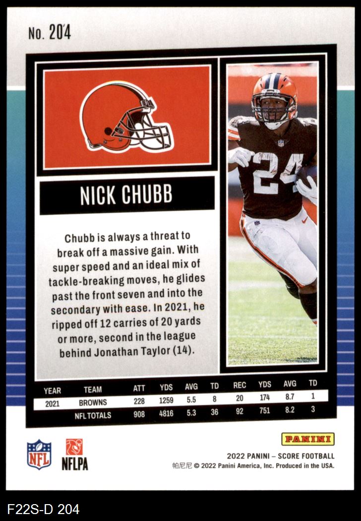 2022 Score #204 Nick Chubb 8 - NM/MT