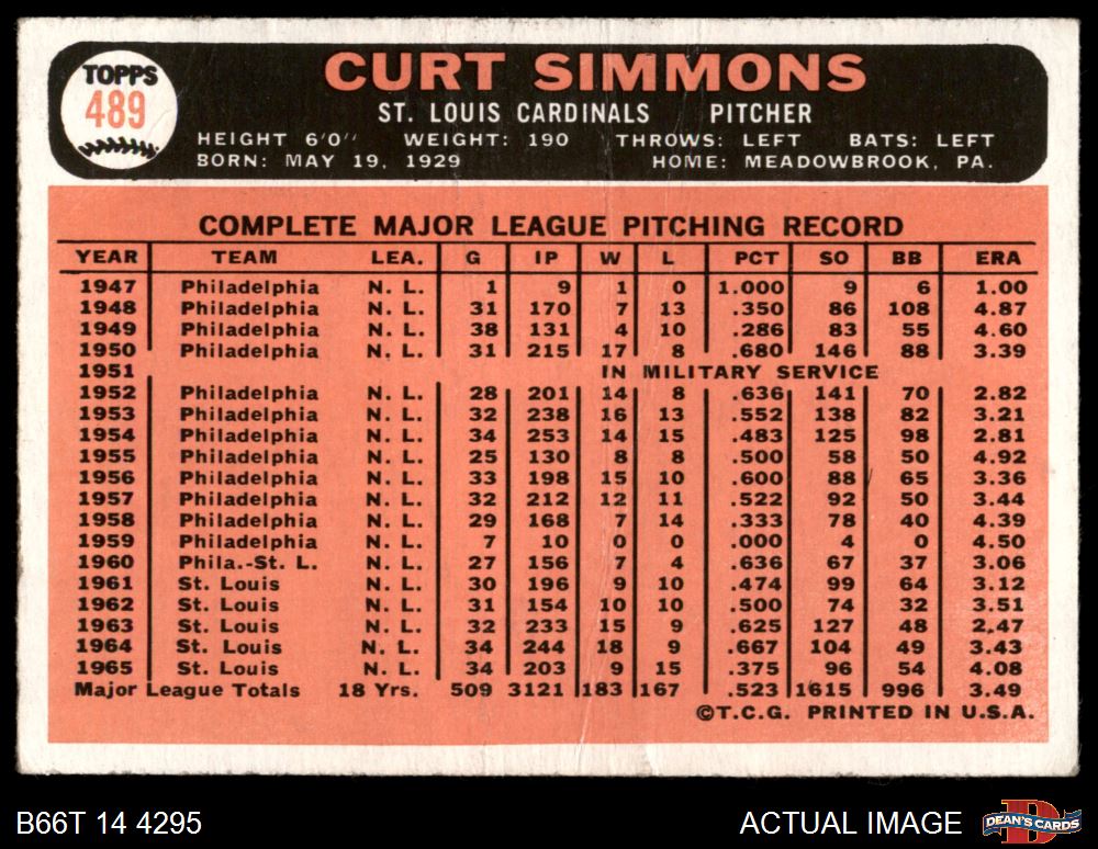 1966 Topps #489 Curt Simmons