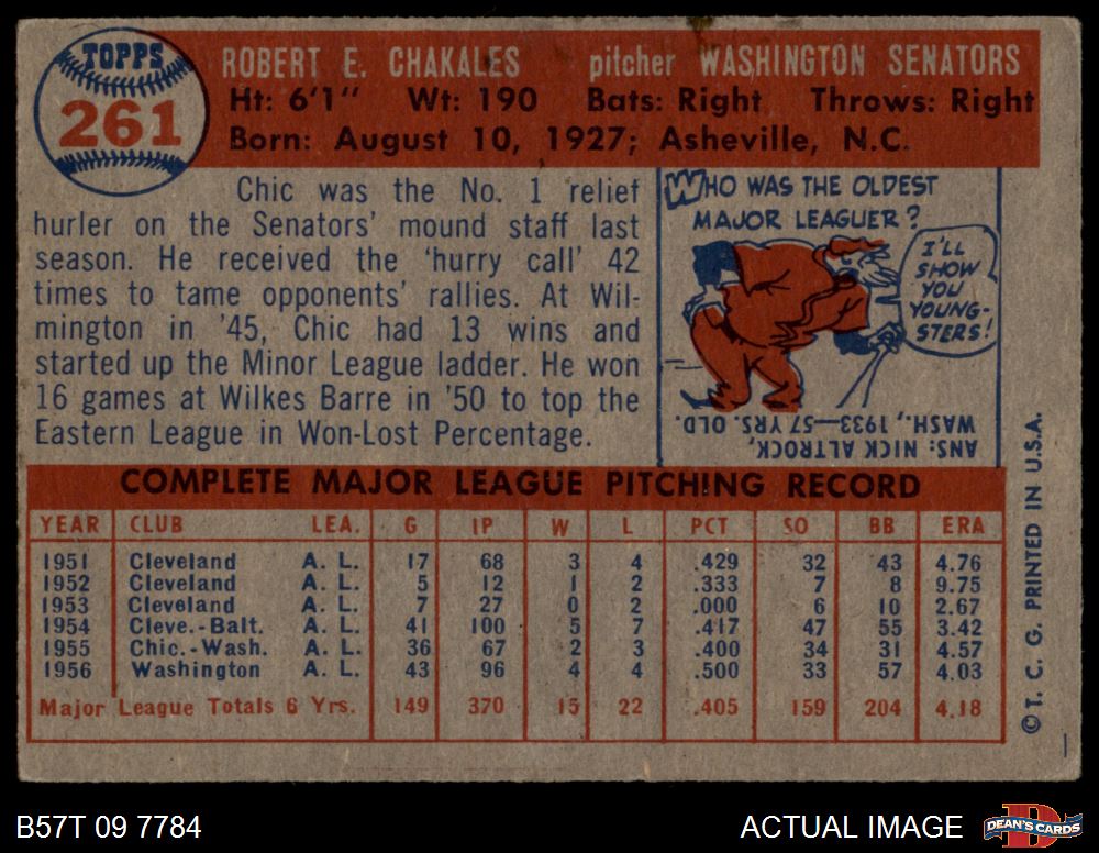 1957 Topps #261 Bob Chakales 1.5 - FAIR