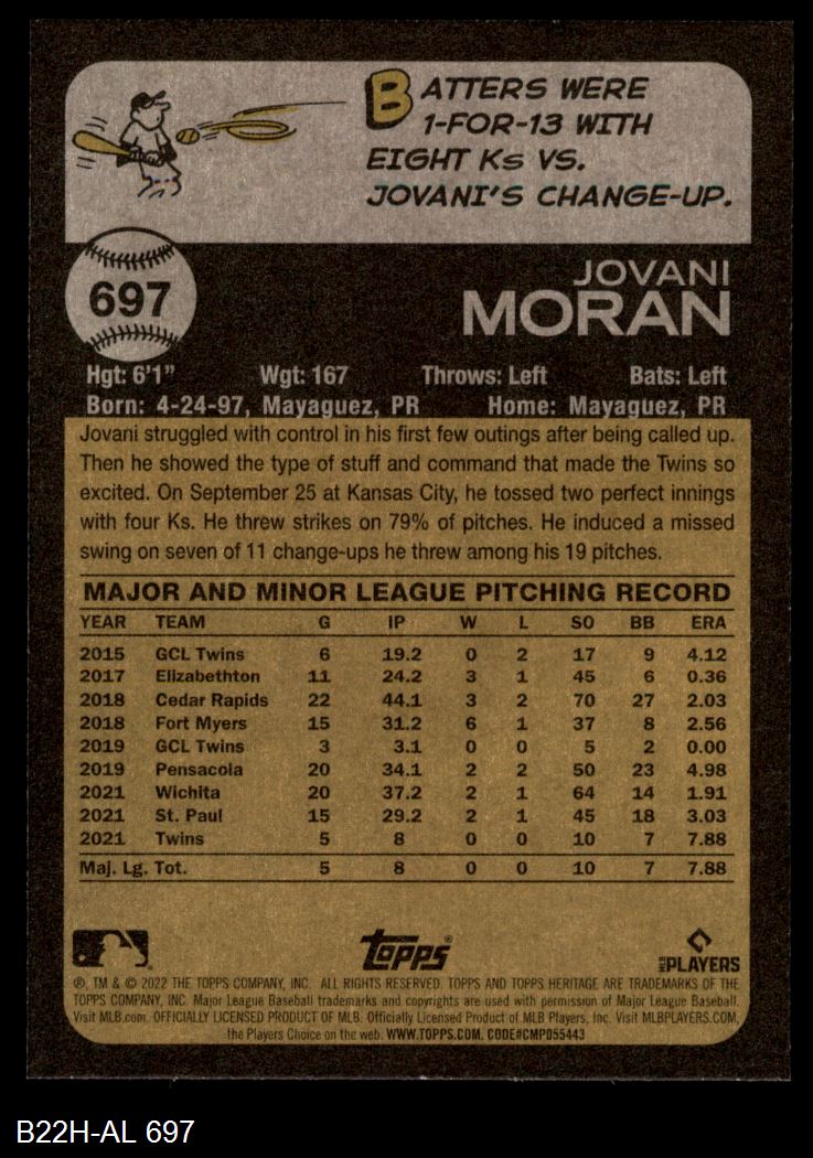 2022 Topps Heritage #697 Jovani Moran 8 - NM/MT