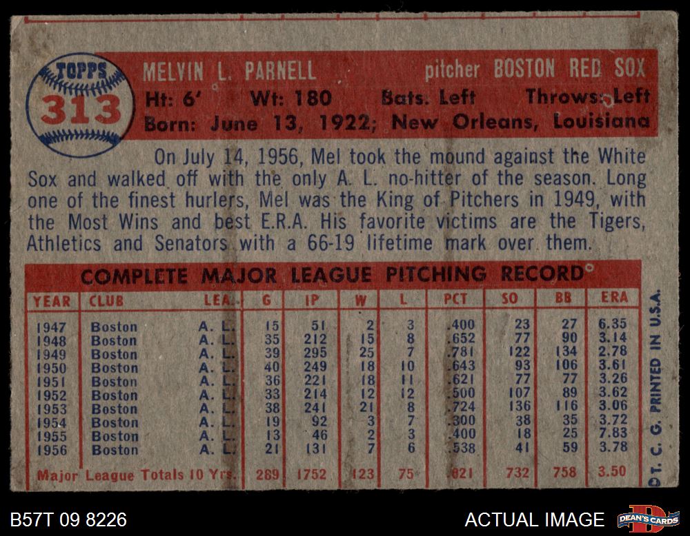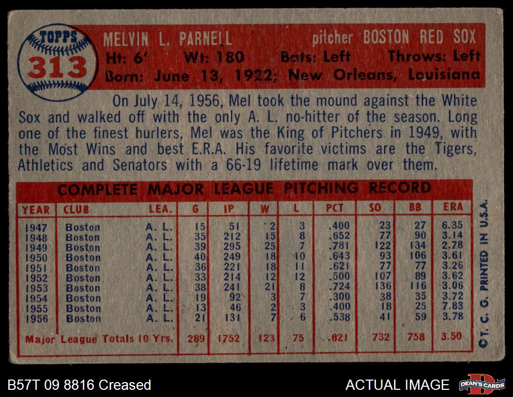 1957 Topps #313 Mel Parnell 2 - GOOD