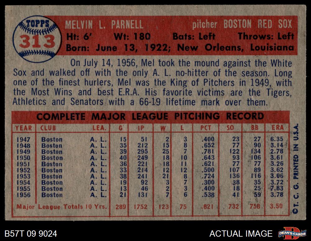 1957 Topps #313 Mel Parnell 4 - VG/EX