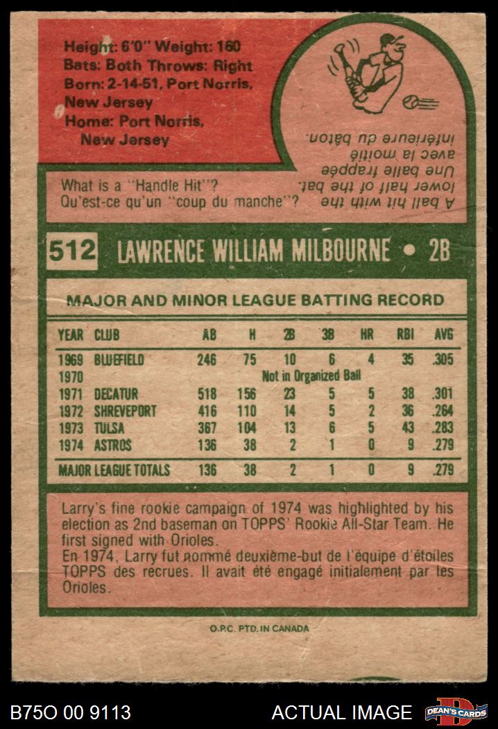 1975 O-Pee-Chee #512 Larry Milbourne 1.5 - FAIR