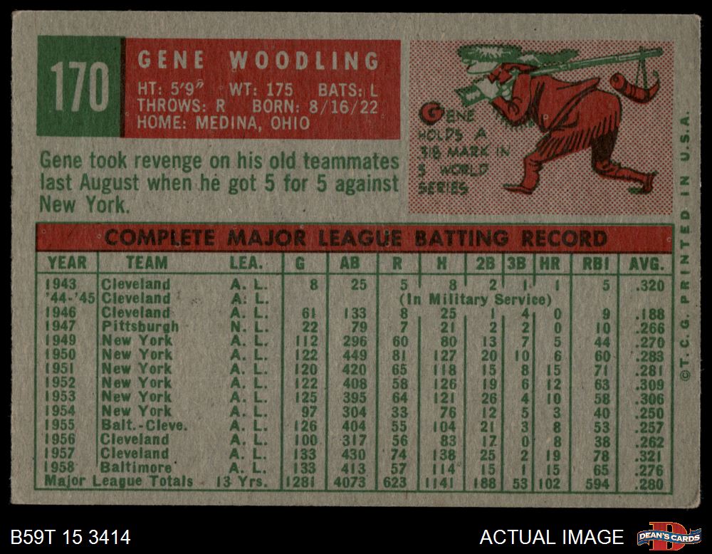 1959 Topps #170 Gene Woodling 4 - VG/EX