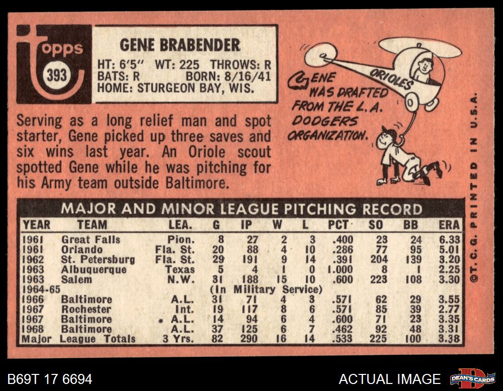 1969 Topps #393 Gene Brabender