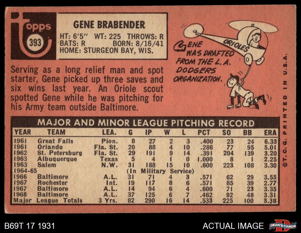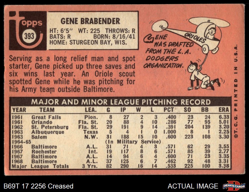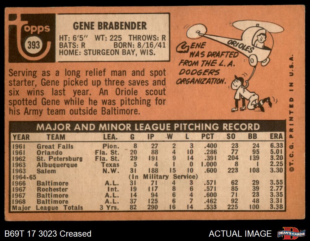 1969 Topps #393 Gene Brabender 2 - GOOD