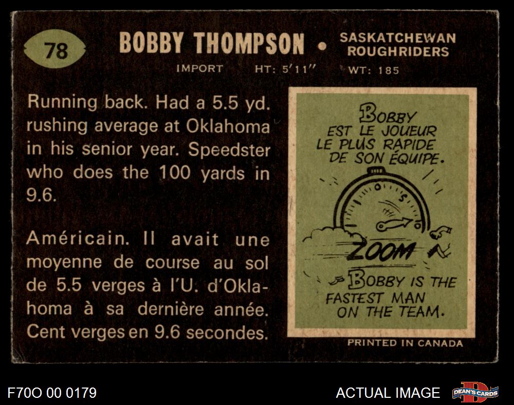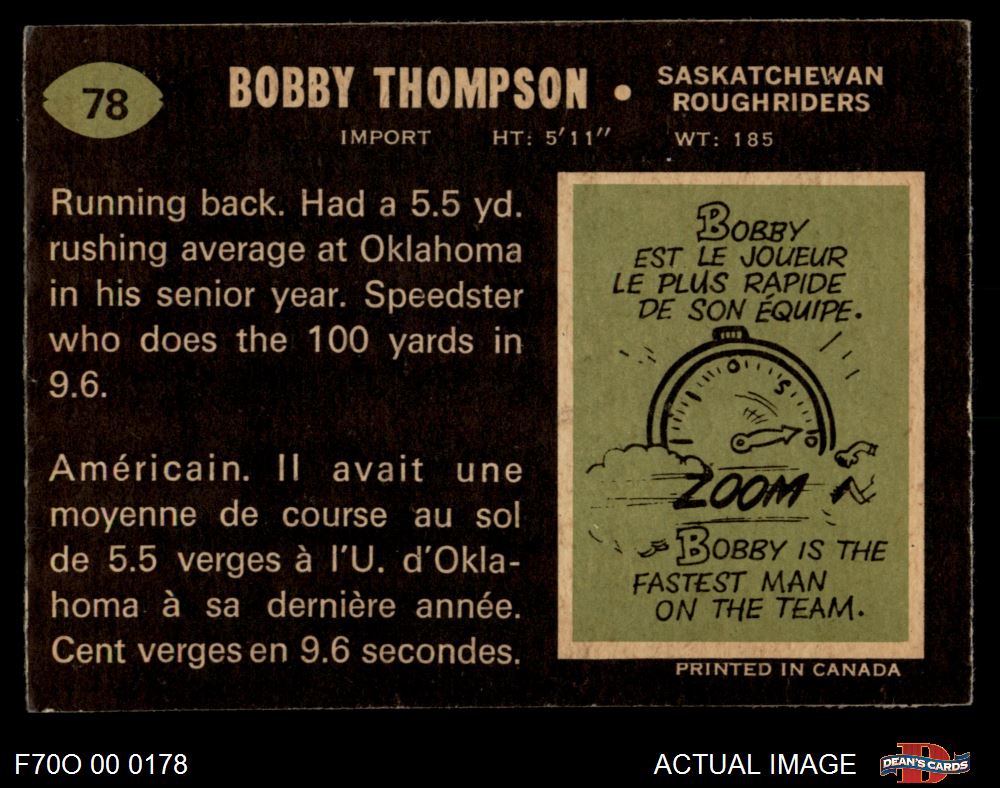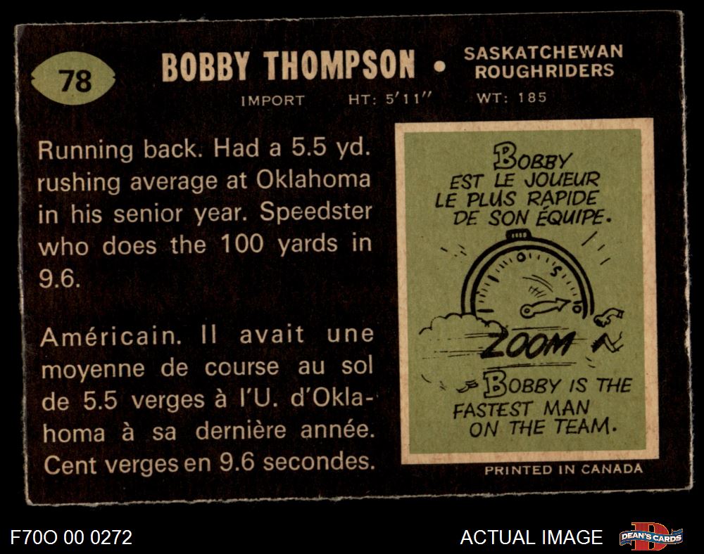 1970 O-Pee-Chee CFL #78 Bobby Thompson 5 - EX
