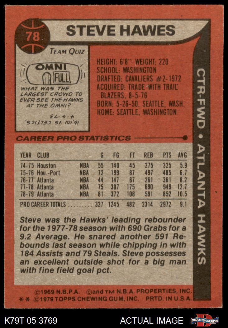 1979 Topps #78 Steve Hawes 6.5 - EX/MT+