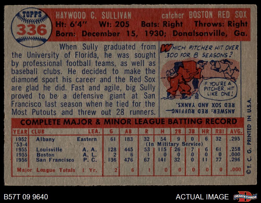 1957 Topps #336 Haywood Sullivan 3 - VG
