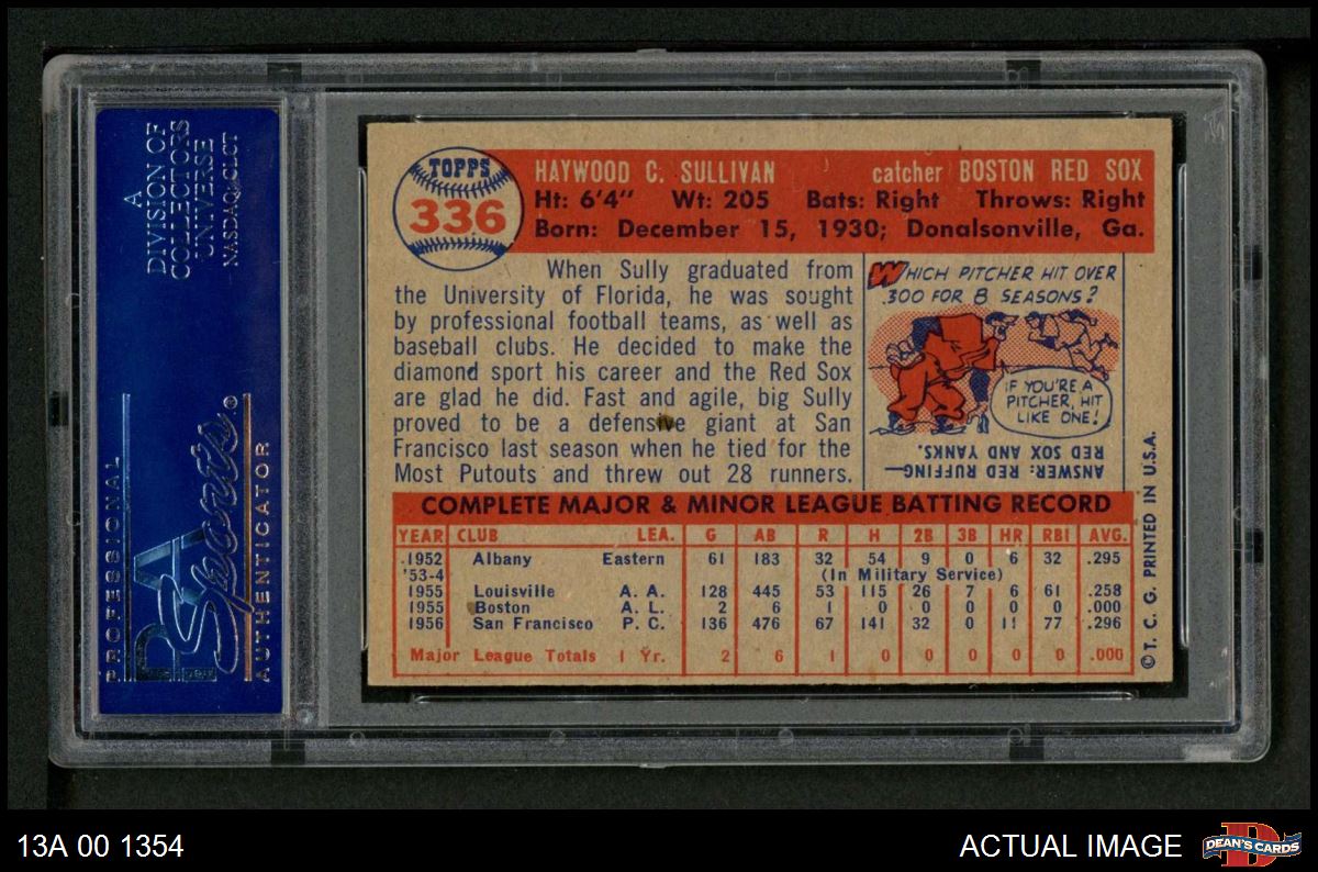 1957 Topps #336 Haywood Sullivan PSA 8 - NM/MT