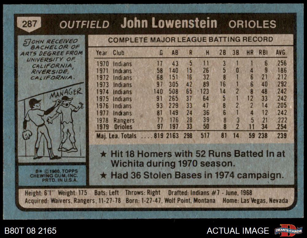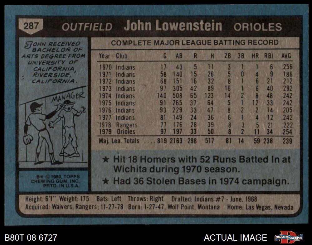1980 Topps #287 John Lowenstein 7.5 - NM+