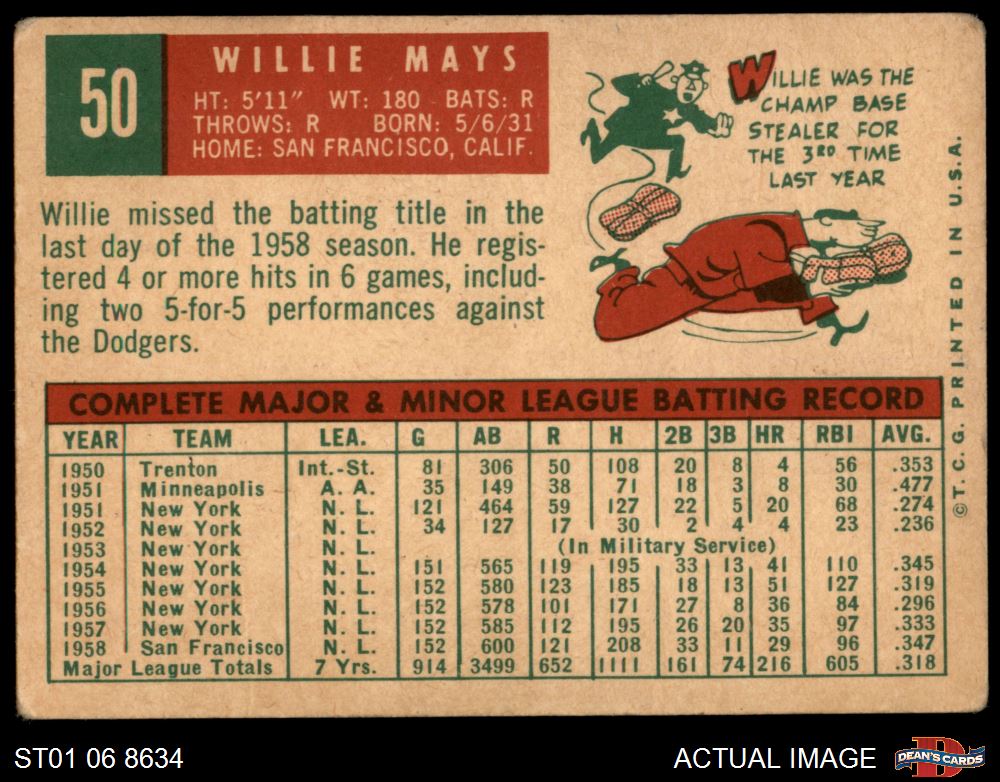 1959 Topps #50 Willie Mays 1.5 - FAIR