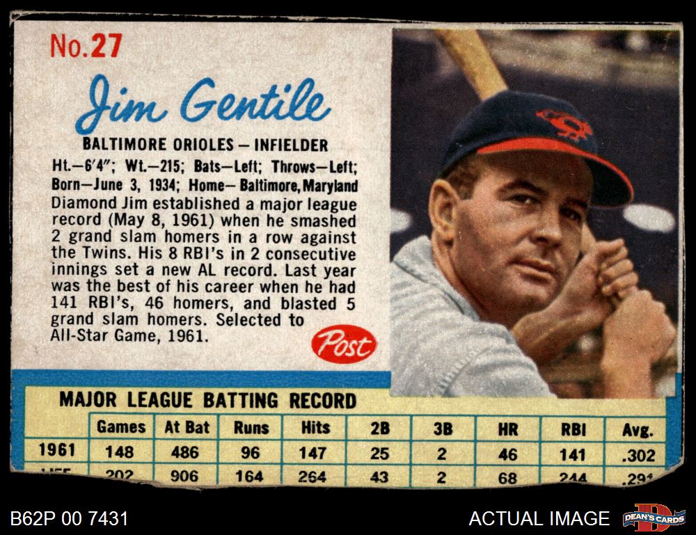 1962 Post Cereal #27 BAL Jim Gentile