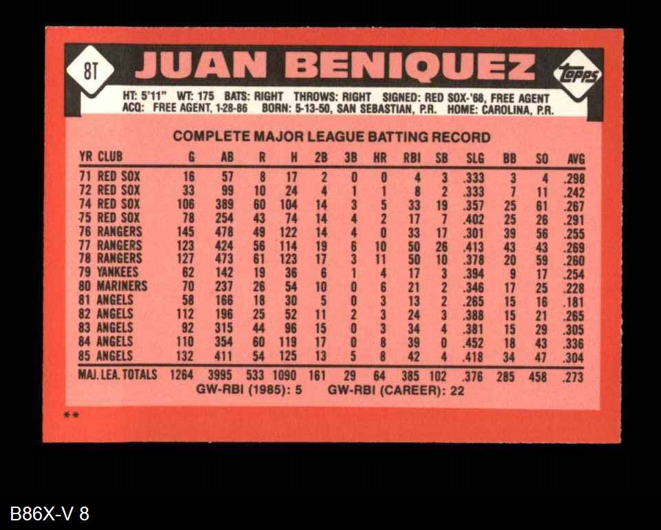 1986 Topps Traded #8 T Juan Beniquez