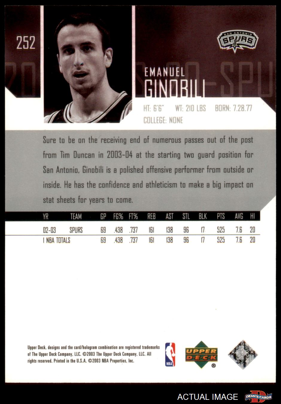 2003 Upper Deck #252 Manu Ginobili 8 - NM/MT