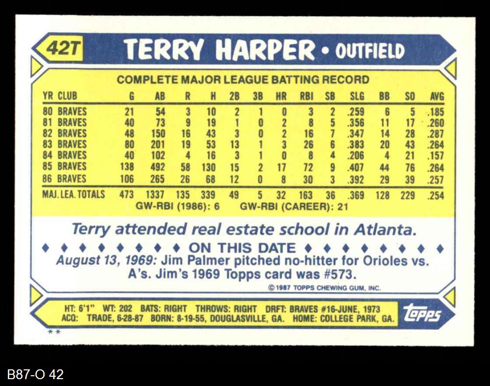 1987 Topps Traded #42 T Terry Harper 8 - NM/MT