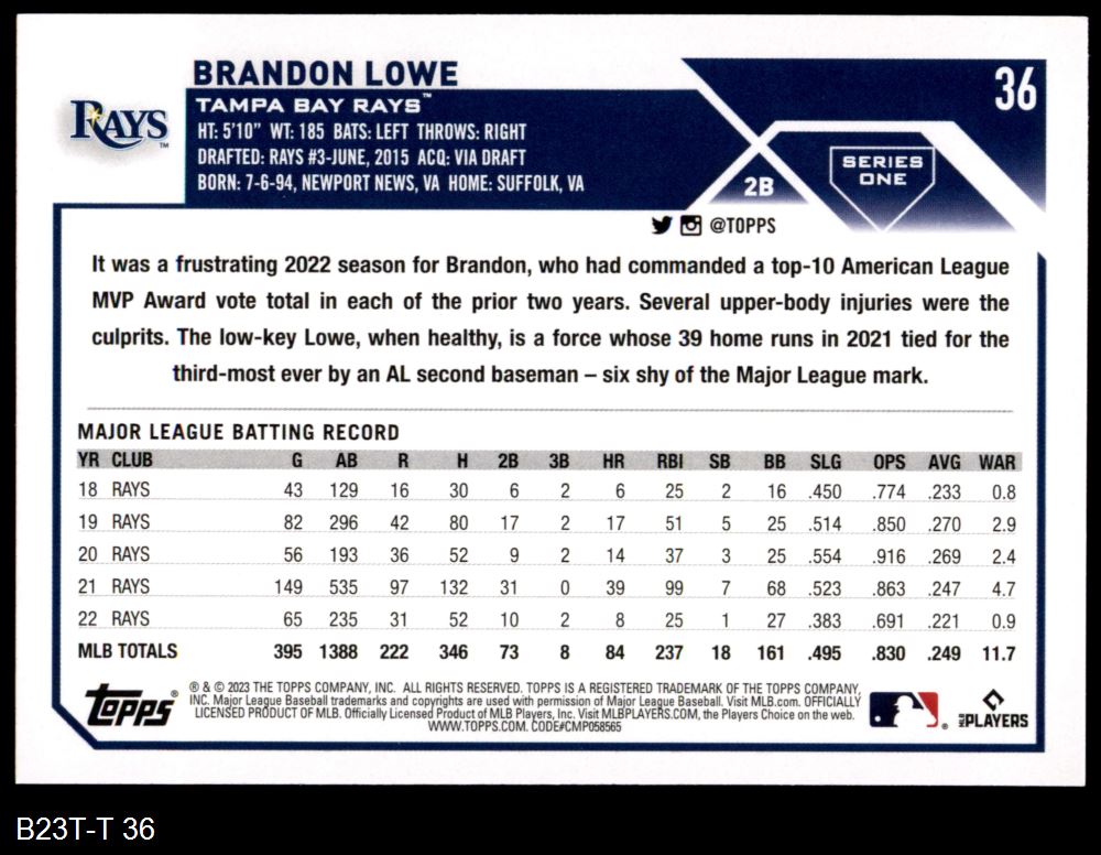 2023 Topps #36 Brandon Lowe
