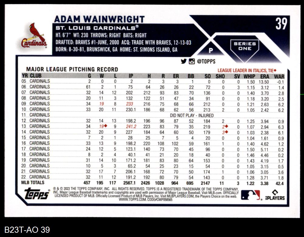 2023 Topps #39 Adam Wainwright