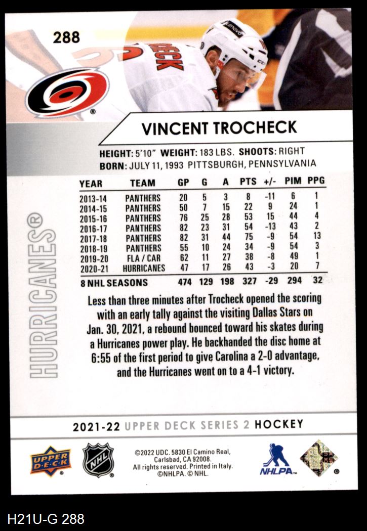 2021 Upper Deck #288 Vincent Trocheck