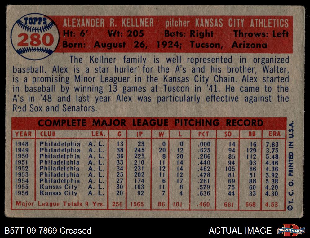 1957 Topps #280 Alex Kellner