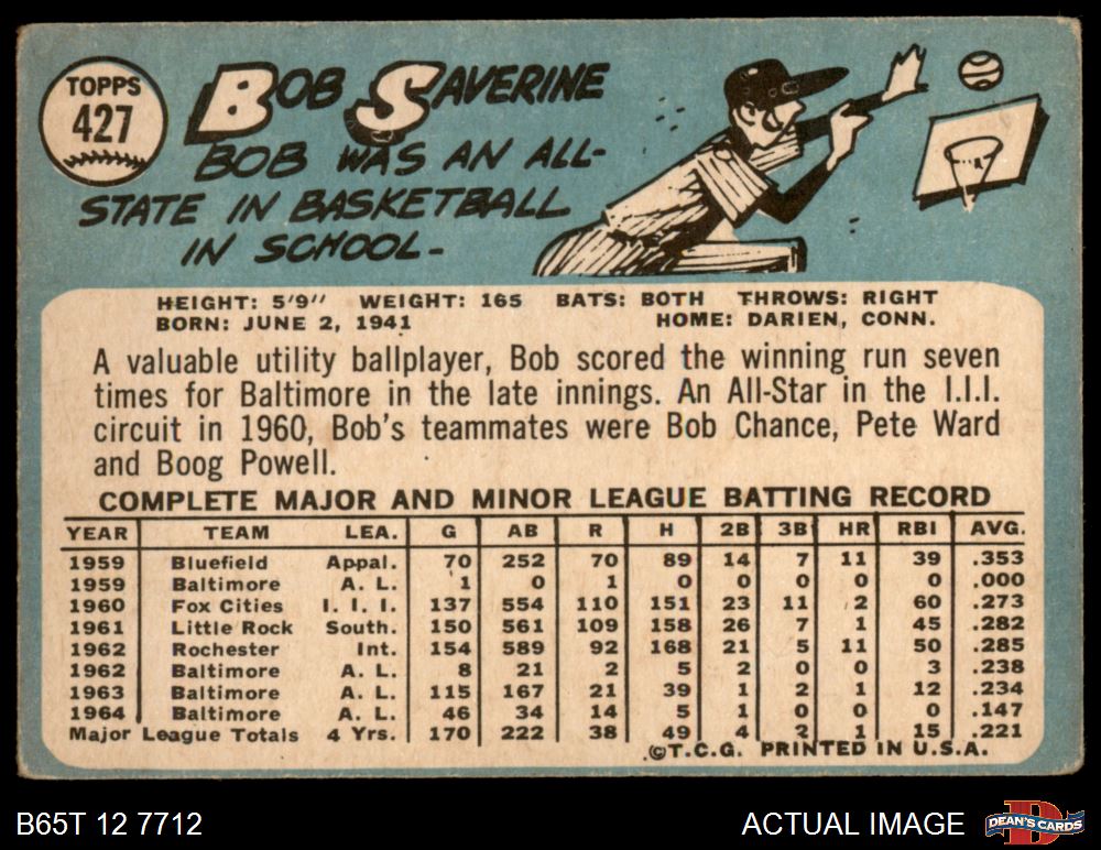 1965 Topps #427 Bob Saverine 1.5 - FAIR