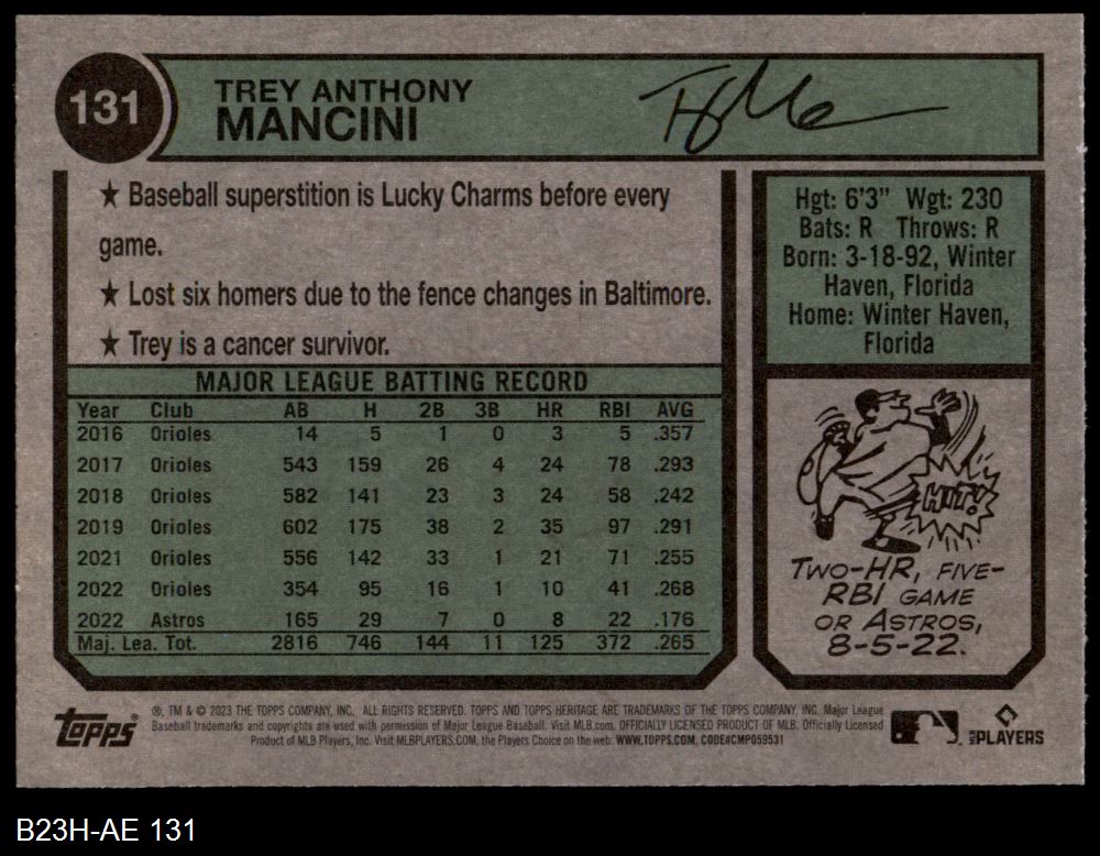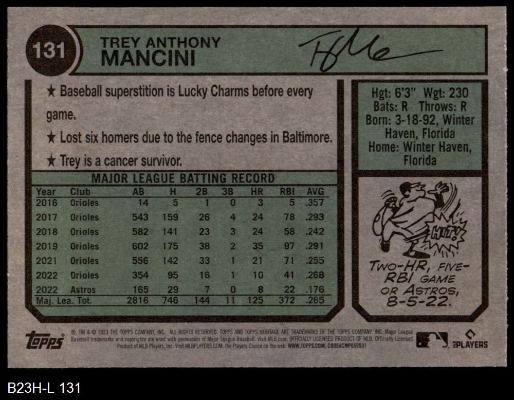 2023 Topps Heritage #131 Trey Mancini 8 - NM/MT