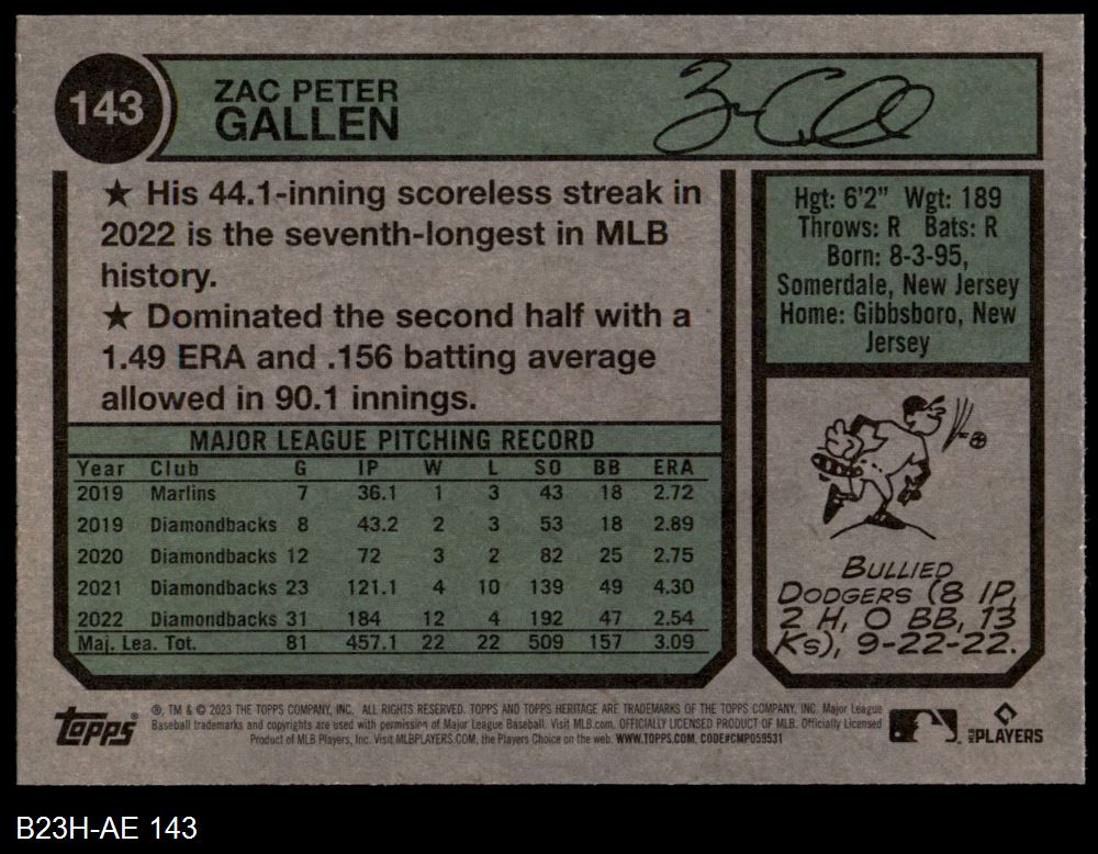 2023 Topps Heritage #143 Zac Gallen