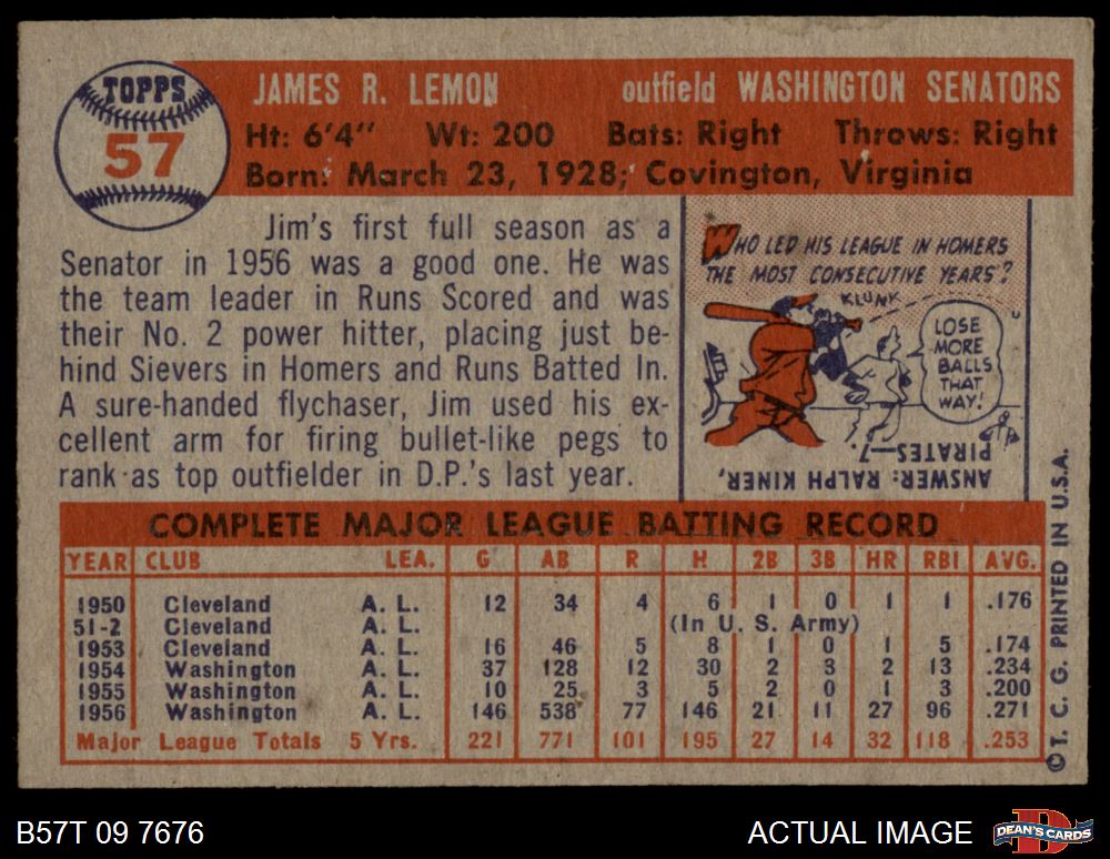 1957 Topps #57 Jim Lemon