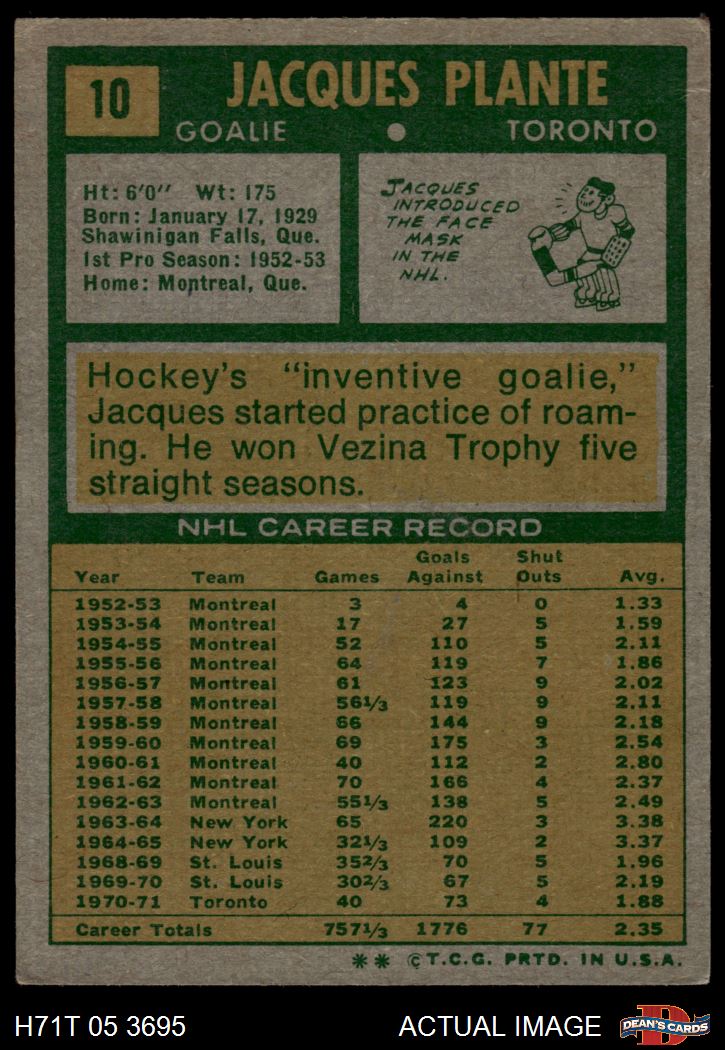 1971 Topps #10 Jacques Plante 2 - GOOD