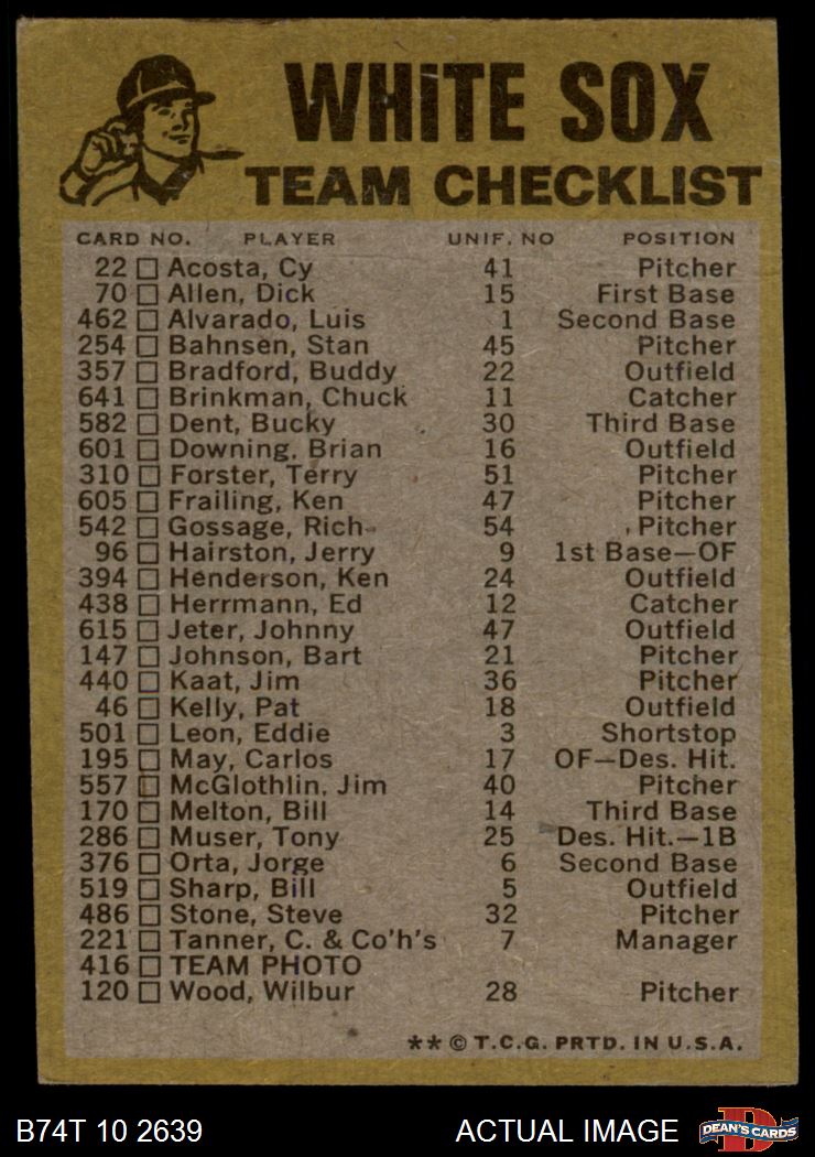 1974 Topps Chicago White Sox Red Team Checklist 1.5 - FAIR