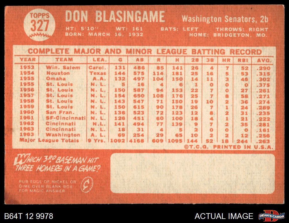 1964 Topps #327 Don Blasingame AUTHENTIC
