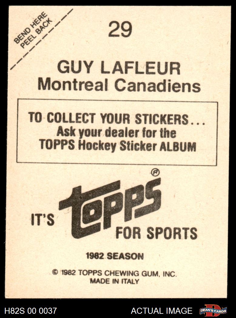 1982 Topps Stickers #29 Guy Lafleur 8 - NM/MT