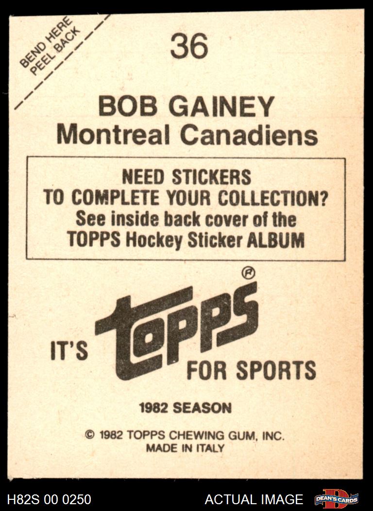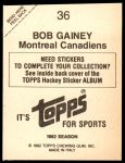 1982 Topps Stickers #36 Bob Gainey 6 - EX/MT