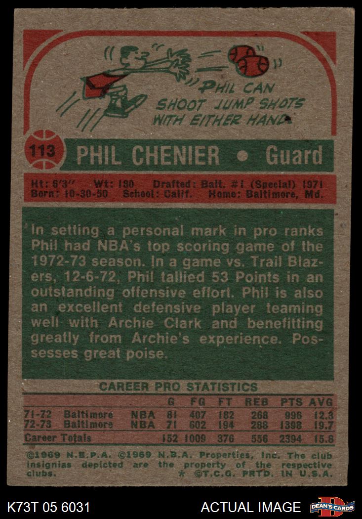 1973 Topps #113 Phil Chenier 3 - VG