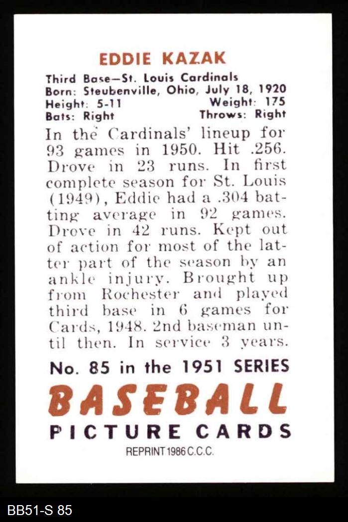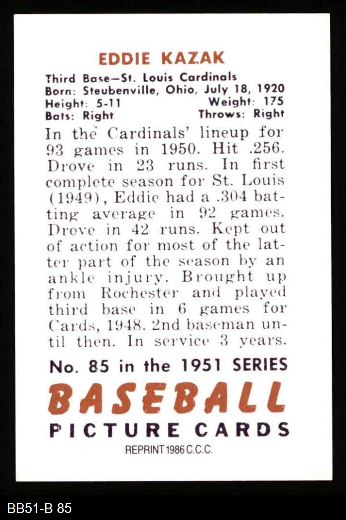 1951 Bowman REPRINT #85 Eddie Kazak