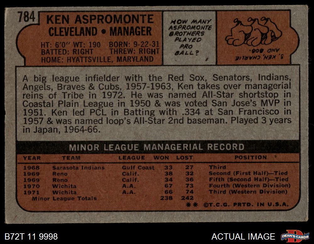 1972 Topps #784 Ken Aspromonte 4 - VG/EX