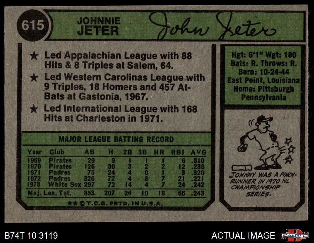 1974 Topps #615 Misspelled Johnnie on card Back Johnny Jeter 4 - VG/EX