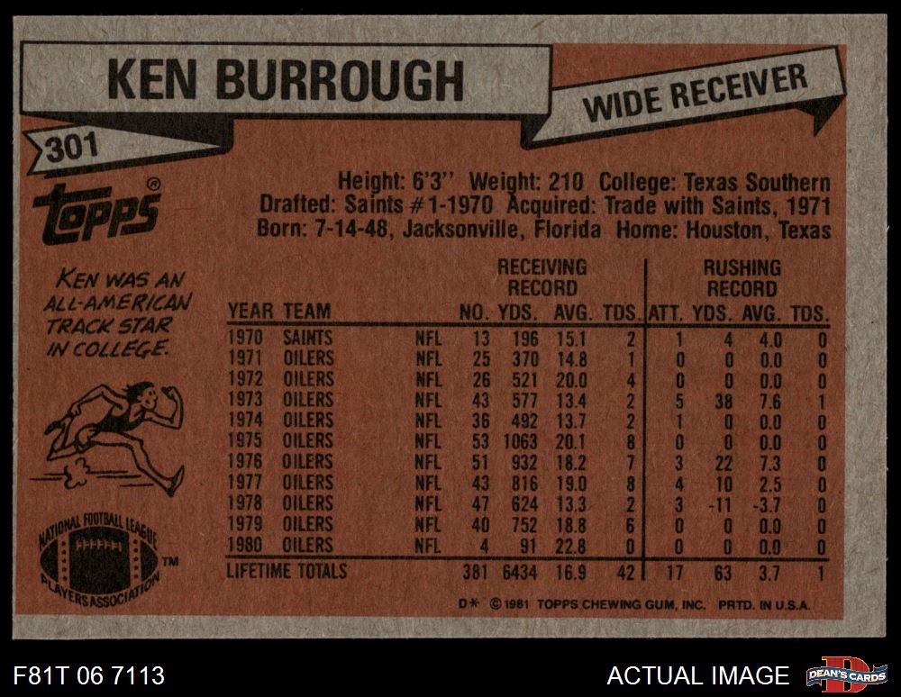 1981 Topps #301 Ken Burrough 4 - VG/EX
