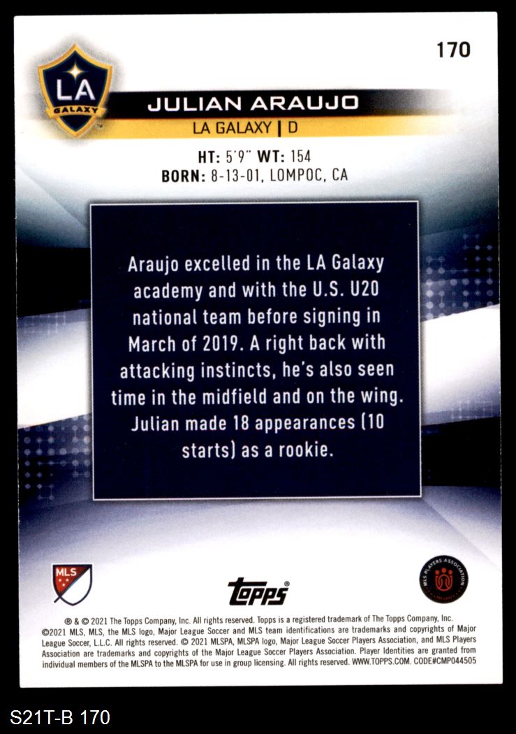 2021 Topps MLS #170 - Julian Araujo 22 Under 22 8 - NM/MT