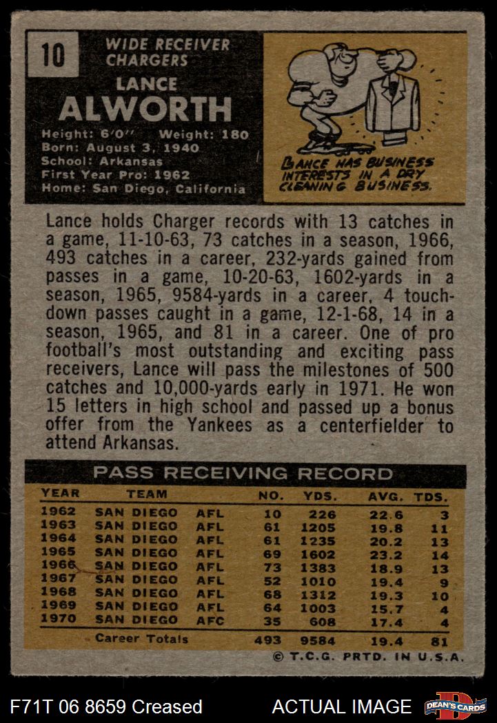 1971 Topps #10 Lance Alworth