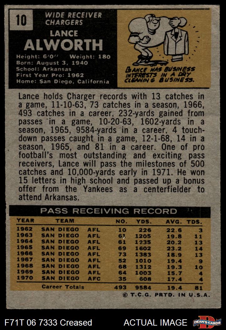 1971 Topps #10 Lance Alworth Front Thumbnail