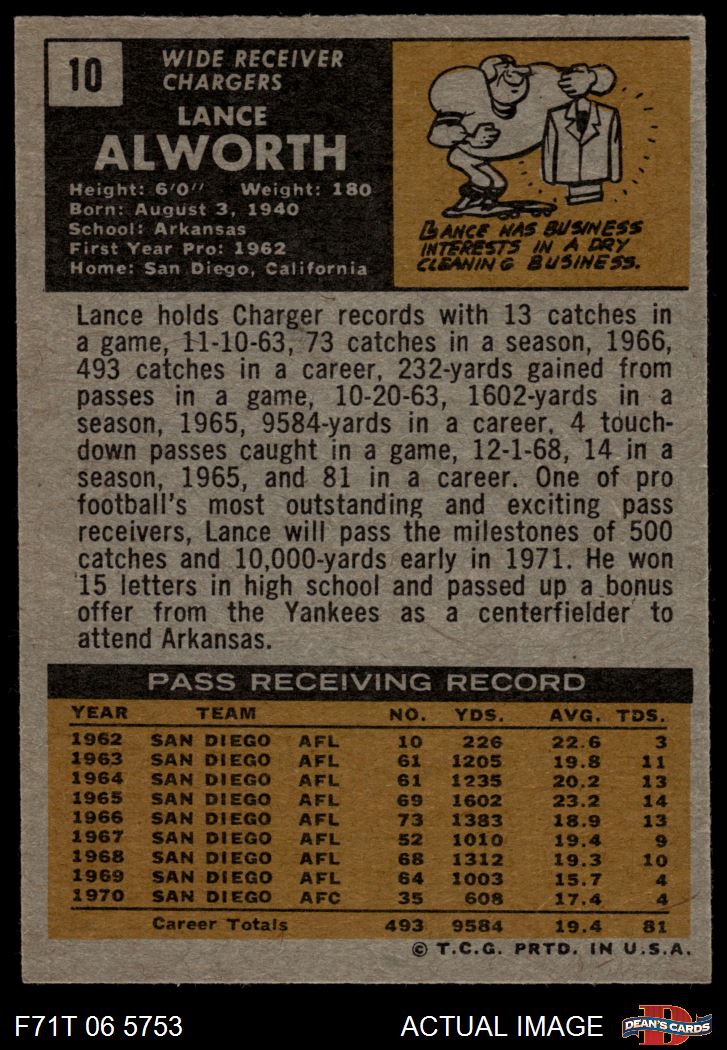 1971 Topps #10 Lance Alworth 7.5 - NM+