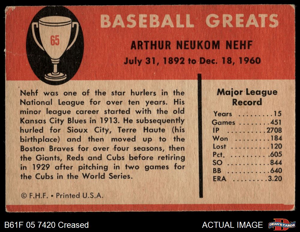 1961 Fleer #65 Art Artie Nehf Front Thumbnail