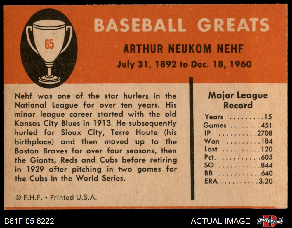 1961 Fleer #65 Art Artie Nehf 6 - EX/MT