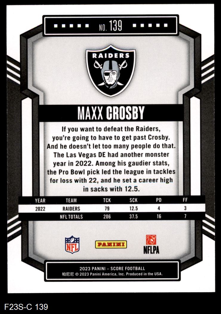 2023 Score #139 Maxx Crosby 8 - NM/MT